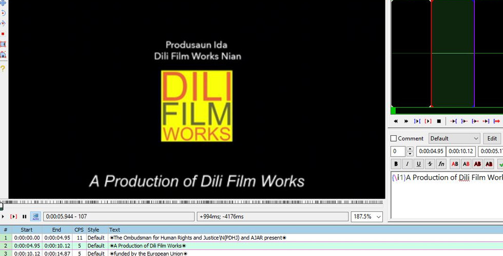 From April to August 2017, for Lingual Consultancy Services, transcribing, subtitling and translating, from Tetun to English, the Dili Film Works’ New Timor-Leste Television Serials on Laloran Justisa (The Wave of Justice) presented by The Ombudsman for Human Rights and Justice (PDHJ) and Asia Justice and Rights (AJAR) and funded by the European Union.